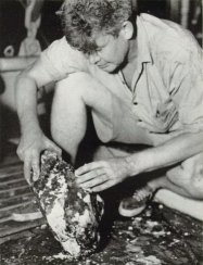 Dr. Ewing examines a 60-million year old rock retrieved from the foot of a cliff on the flank of the Mid-Atlantic ridge. Copyright National Geographic.One of the first areas investigated by Ewing's group was a seamount northeast of Bermuda on their way out to the Ridge. They decided to take their first core sample from the center of the mount, about a mile below the surface. When the core was examined later at Columbia University they were surprised to find that after 8 inches of typical deep-sea sediment called "globigerina ooze" the sample became much whiter and graded into finer grained chalk containing foraminifera of Eocene Age. As Dr. Ewing explained,